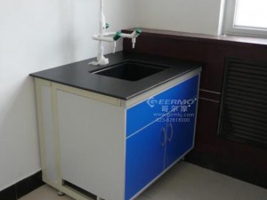 2、臺面: 采用?采用國際品牌實芯理化板,抗化學腐蝕、耐溫180℃、抗刻刮性能好。 ?采用貼面理化板,基材為中密度板,正面粘原裝進口0.8mm厚耐腐蝕理化板。背面粘壓三聚氰胺,板材周邊優質PVC熱融膠封邊,總厚度30mm。 ?采用環氧樹脂板,總厚度19mm。具有防腐、防火、防蛀性能。